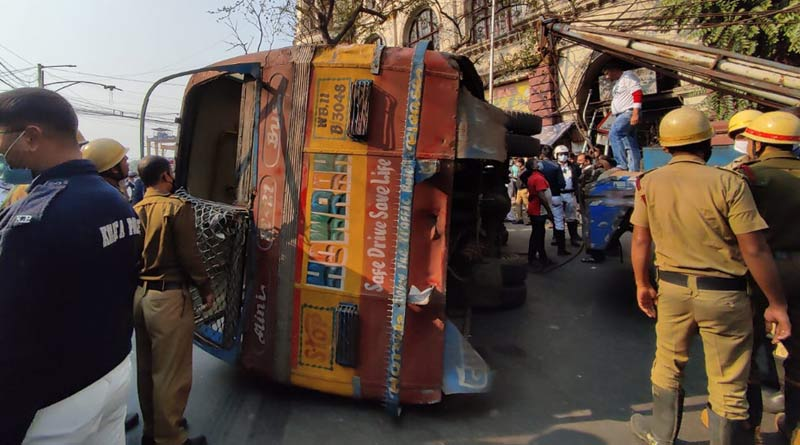 ধর্মতলায় চাকা ফেটে উল্টে গেল মিনিবাস, আহত ২০