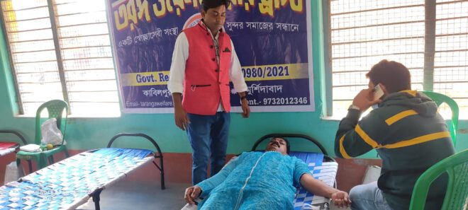 খাদিজা খাতুন -ঃ তরঙ্গ ওয়েলফেয়ার ট্রাস্টের  রক্তদান শিবির অনুষ্ঠিত হয়ে গেলো   মুর্শিদাবাদ জেলার সাগরদীঘির কাবিলপুর হাই স্কুলে,  ৩০ জানুয়ারী ২০২২।