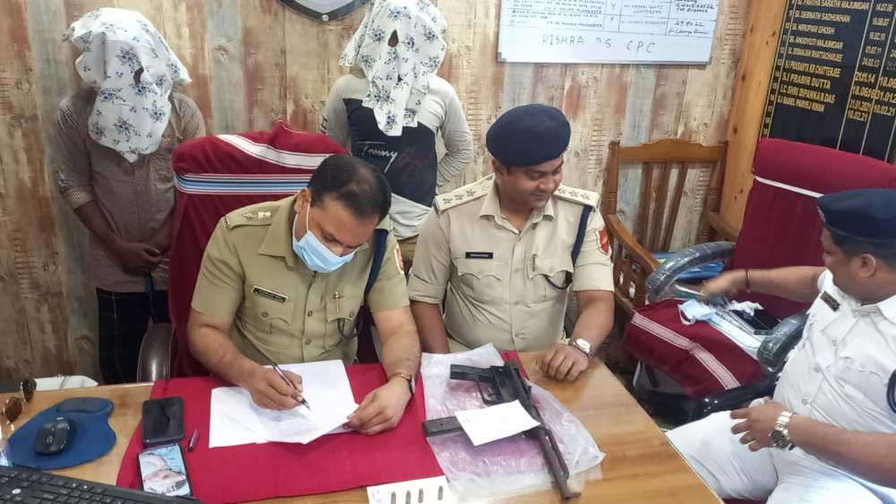 গোপন সূত্রে খবর পেয়ে মঙ্গলবার রাতে রিষড়া থানার পুলিশ এবং চন্দননগর পুলিশের গোয়েন্দা বিভাগের কর্মীরা যৌথ অভিযান চালান রিষড়ার তিন নম্বর নতুনগ্রাম নিত্যানন্দপল্লি এলাকায়। সেখান থেকে সৌম্যেন্দু দাস ওরফে বিল্টু এবং গোবিন্দ দাস নামে দুই যুবককে গ্রেফতার করা হয়েছে। সৌম্যেন্দুর থেকে মিলেছে কার্বাইনের মতো দেখতে ওই আগ্নেয়াস্ত্রটি। পাশাপাশি একটি ম্যাগাজিন এবং কয়েক রাউন্ড কার্তুজও পাওয়া গিয়েছে তাঁদের থেকে। ধৃতদের বিরুদ্ধে অস্ত্র আইনে মামলা রুজু করা হয়েছে।