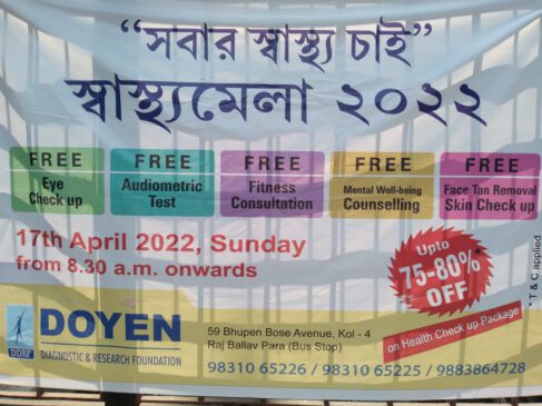 সেখ আবদুল আজিম : আজ ১৭ই এপ্রিল রবিবার উত্তর কলকাতার রাজবল্লভ পাড়ায় দোয়ান ডায়গোনষ্টি এন্ড রিসার্চ ফাউন্ডেশন উদ্যোগে (সবার স্বাস্থ্য চাই স্বাস্থ্ মেলা ২০২২) আয়োজন করা হয়। বিগত ২০ বছর ধরে এই স্বাস্থ্য মেলার আয়োজন করা হচ্ছে।ডঃ সুদক্তা রায় ও ম্যানিজিং ডিরেক্টর সুবির রায়ের উপস্থিতিতে ১৫০জন মানুষের ফুল বডি চিকিৎসা করা হয়।