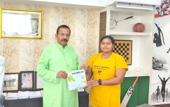 বিশেষ প্রতিনিধি : পশ্চিমবঙ্গ সরকারের ক্রীড়া দপ্তর কর্ত্তৃক ২০১৮ সালে ‘বিশেষ সম্মান’ প্রাপক ও ‘মোলোকাই’ চ্যানেল জয় করা এশিয়ার প্রথম মহিলা সাঁতারু সায়নী দাস আজ ক্রীড়া দপ্তরে এসে ক্রীড়া মন্ত্রী শ্রী অরূপ বিশ্বাস-র সঙ্গে দেখা করেন এবং তাঁর সাফল্যের অভিজ্ঞতার কথা জানান।