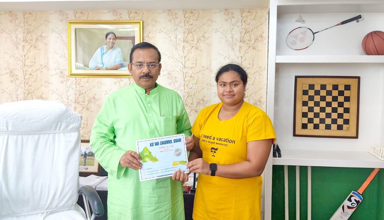 ক্রীড়ামন্ত্রীর সঙ্গে দেখা করলেন ‘মোলোকাই’ চ্যানেল জয়ী এশিয়ার প্রথম মহিলা সাঁতারু সায়নী দাস