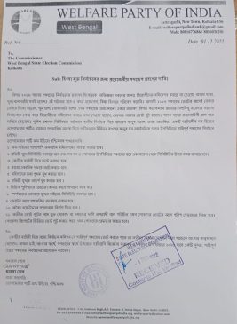 রাজ্য নির্বাচন কমিশনকে ওয়েলফেয়ার পার্টি জানিয়েছে, বিগত ২০১৮ সালের পঞ্চায়েত নির্বাচনের ভয়াবহ হিংসাত্মক অভিজ্ঞতা সকলের জানা। বিরোধীদের নমিনেশন করতে না দেওয়া, অবাধ ছাপ্পা, খুন,বোমাবাজি সবই হয়েছে। এই ঘটনার প্রায় ৫ বছর হয়ে গেল, কিন্তু হিংসার পরিবেশ কমেনি। আগামী ২০২৩ পঞ্চায়েত ভোটের আগেই জেলায় জেলায় হিংসা বাড়ছে, খুন হচ্ছে, বোমাবাজি হচ্ছে। এখন পঞ্চায়েত ভোট মানেই একটা আতঙ্ক! বিগত কয়েকমাসে রাজ্যের বেশকিছু জায়গায় মাদ্রাসা নির্বাচনকে কেন্দ্র করে বিরোধীদের নমিনেশন করতে বাধা দেওয়া হয়েছে, কোথাও আবার ভোট লুট হয়েছে। শাসক দলের গুন্ডাবাহিনী গ্রাম গঞ্জে দাপিয়ে বেড়াচ্ছে। পুলিশ প্রশাসন নির্বিকার! বর্তমানে স্থানীয় নির্বাচন নিয়ে সাধারণ মানুষ হতাশ, তারা আতঙ্কিত। একটি দায়িত্বশীল দল হিসেবে ওয়েলফেয়ার পার্টিও রাজ্যের গণতান্ত্রিক অবস্থা নিয়ে গভীরভাবে চিন্তিত। বাংলার মানুষ সব রাজনৈতিক দলের উপস্থিতিতে শান্তিপূর্ণ পঞ্চায়েত নির্বাচন চাইছে।