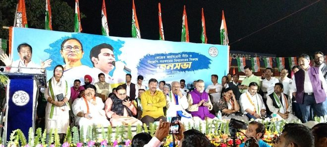 উল্লেখ্য সোমবার কেন্দ্রের জনবিরোধী নীতি ও বিজেপি সরকারের মিথ্যাচারের বিরুদ্ধে উঃ চব্বিশ পরগনা জেলার দমদম ব্যারাকপুর সাংগঠনিক জেলা তৃণমূল কংগ্রেসের ডাকে বিশাল জনসভা সংঘটিত হয় ব্যারাকপুর স্টেশন রোডে।
