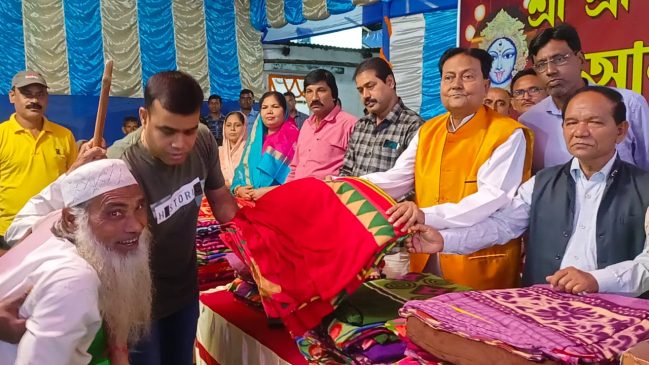 ভগবানগোলার রানীতলায় শ্রী শ্রী শ্যামাপুজা উপলক্ষে বস্ত্র উপহার অনুষ্ঠান হয়