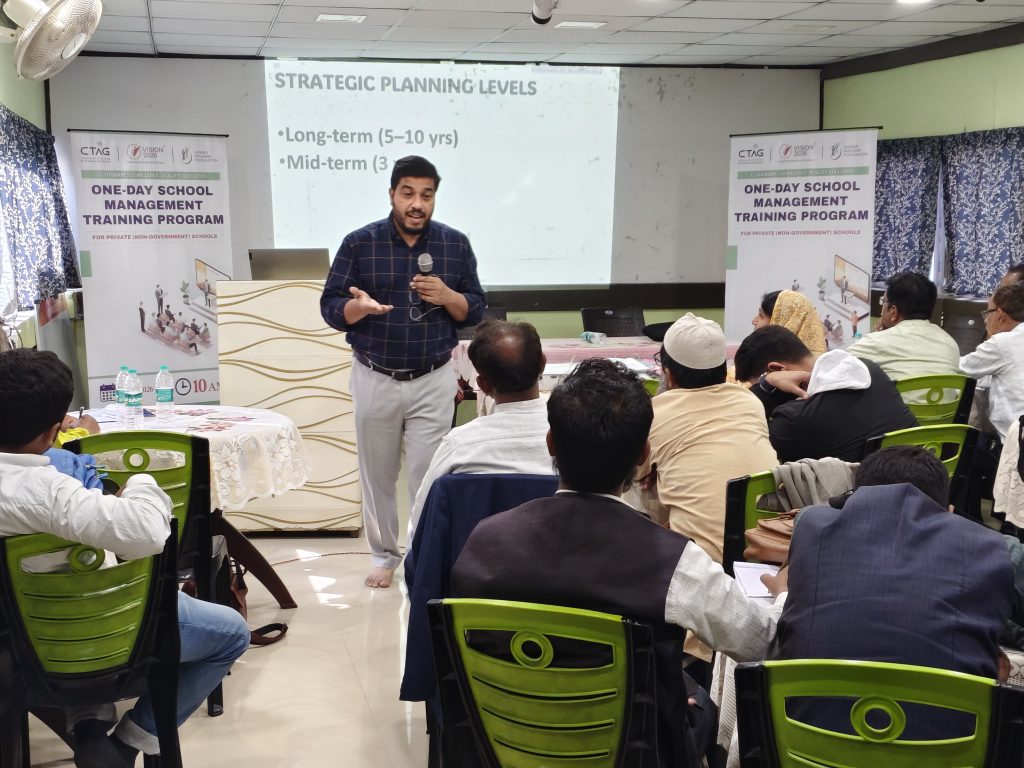 দুপুরের বিরতির পর “Strategy for Self-Sustain Institutional Model” শীর্ষক সেশনে বক্তব্য রাখেন এম. সাজিদ (Director, Vision 2026)। তিনি একটি শিক্ষাপ্রতিষ্ঠানকে কীভাবে আর্থিক, মানবসম্পদ ও অবকাঠামোগতভাবে সুসংগঠিত ও স্বনির্ভর করা যায়, সে বিষয়ে দিকনির্দেশনা দেন। ভিশন নির্ধারণ, কৌশলগত পরিকল্পনা, নেতৃত্বের ভূমিকা, নীতিনির্ধারণ, স্কুল ব্র্যান্ডিং, সামাজিক যোগাযোগমাধ্যমে সক্রিয় উপস্থিতি এবং কমিউনিটি সহযোগিতার গুরুত্ব তুলে ধরা হয়। পাশাপাশি কার্যকর অপারেশনাল ম্যানেজমেন্ট ও ভবিষ্যৎ পরিকল্পনা প্রণয়নের ওপরও আলোকপাত করা হয়।