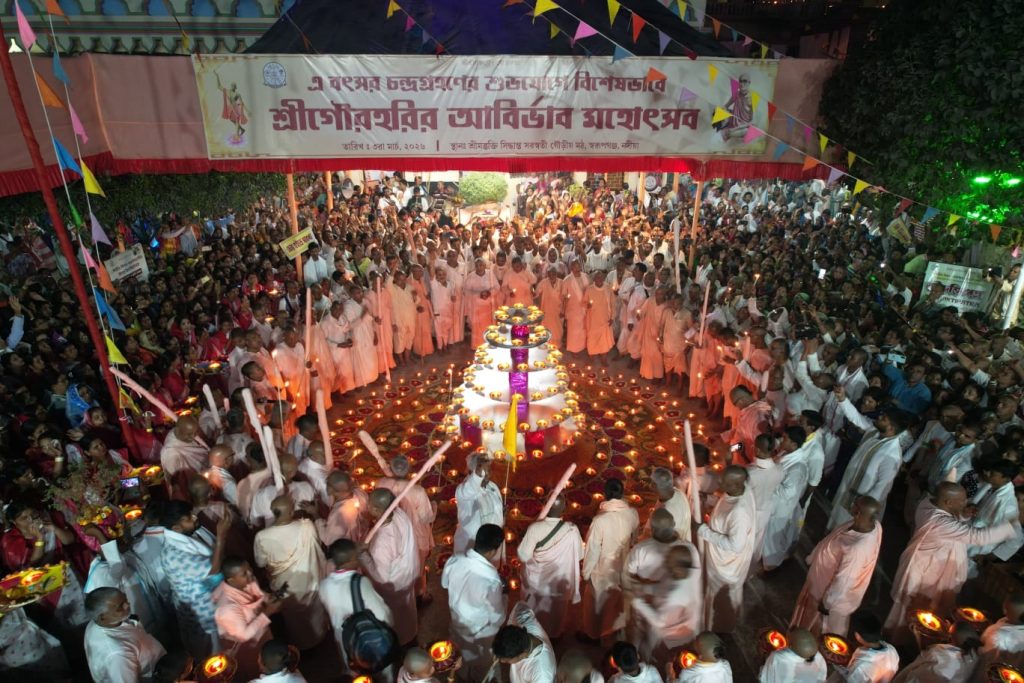 গৌড়ীয় মিশনের আচার্য্য ও সভাপতি ভক্তি সুন্দর সন্নাসী মহারাজ বলেন, আজ থেকে ৫৪০ বছর আগে চন্দ্রগ্রহনের দিন মহাপ্রভুর আবির্ভাব হয়েছিল। এবছরও চন্দ্রগ্রহনের দিন তাই বিশেষ অনুষ্ঠানের মাধ্যমে মহাপ্রভুর আবির্ভাব তিথি পালিত হয়। মহাপ্রভুর ৫৪০তম আবির্ভাব বর্ষ উপলক্ষে ৫৪০ টি প্রদীপ প্রজ্জ্বলন ও বিশেষ প্রার্থনার আয়োজন করা হয়। লাল-সাদা বস্ত্র পরিহিত ছোটো শিশু যুবক ও মহিলারা শঙ্খধ্বনি ও উলুধ্বনির মাধ্যমে পরিবেশকে ভক্তিময় করে তোলেন। “হরিবোল” ধ্বনিতে মুখরিত করে তোলেন গোটা এলাকা।